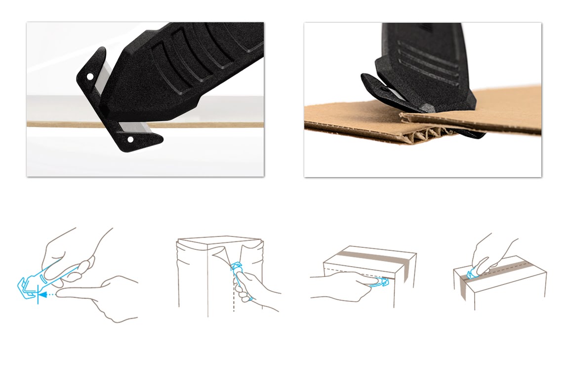 Het lemmet is niet vervangbaar, geschikt voor o.a. enkellaags karton, folie en tape.