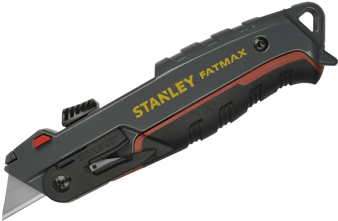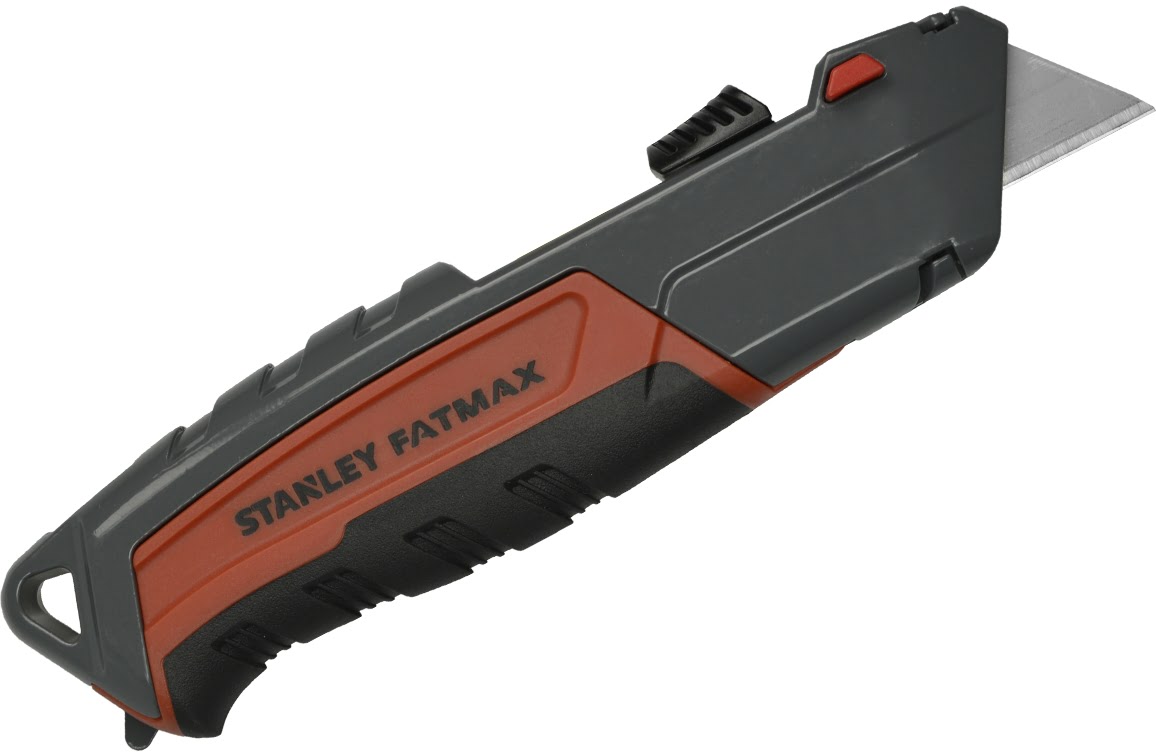 De Stanley FatMax meshouder heeft een instant meswisselsysteem-knop, hierdoor kunt u met één druk op de knop het mes verwijderen en een nieuwe mes plaatsen.