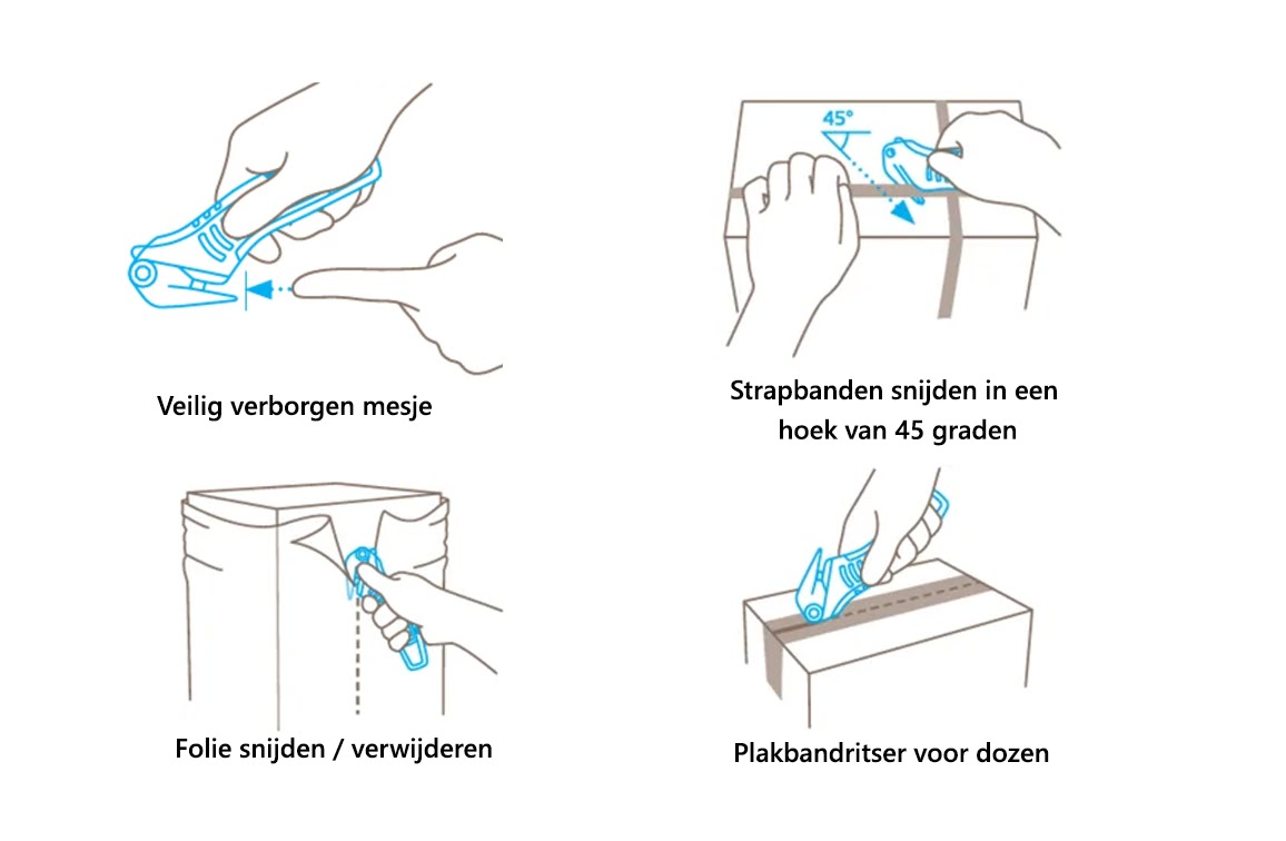Het verborgen mesje en de afgeronde neus van het mes beschermen u en uw producten maximaal. De kop van het mes is versterkt.