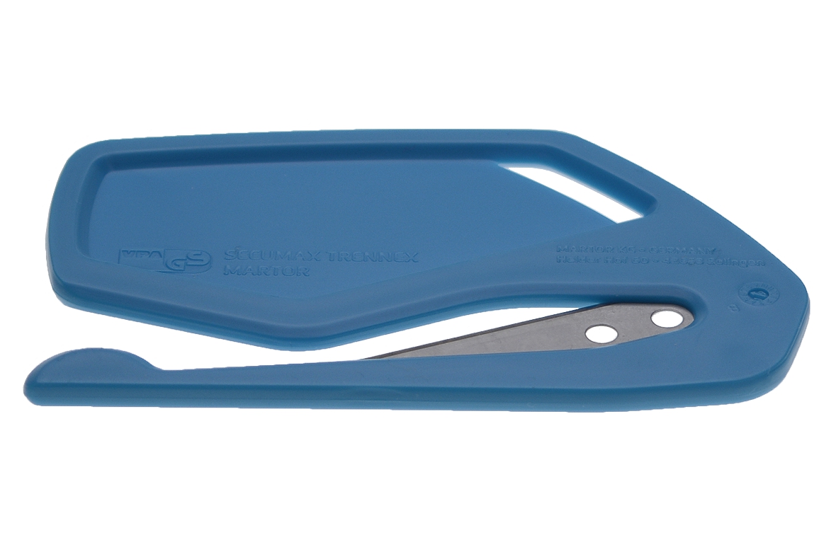 De Martor Secumax Trennex, een vlak snijmes met geintegreerd mesje.
