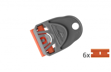 Scraperite Mini SchraperDe Mini Schraper van Scraperite, geschikt voor bijna ieder materiaal. Geleverd met 6 oranje schraapmessen.