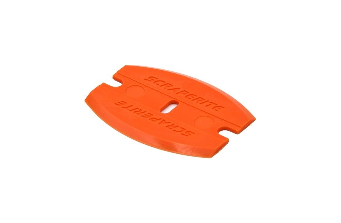 Dit mes kan direct gebruikt worden op bijvoorbeeld het oppervlak van een auto zonder krassen achter te laten. Het oranje mes is het meest universele mes van Scraperite.
