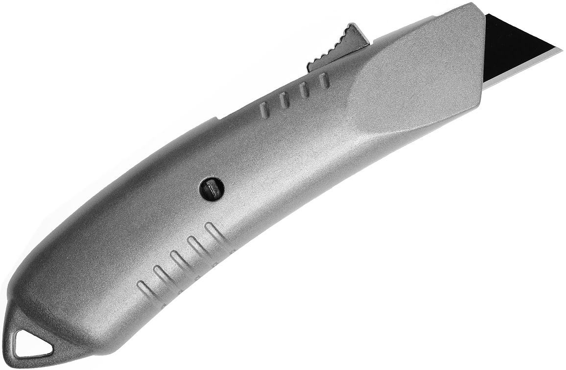 Dit veiligheidsmes is uitgevoerd in massief aluminium. Het lemmet is in 3 standen te plaatsen.
