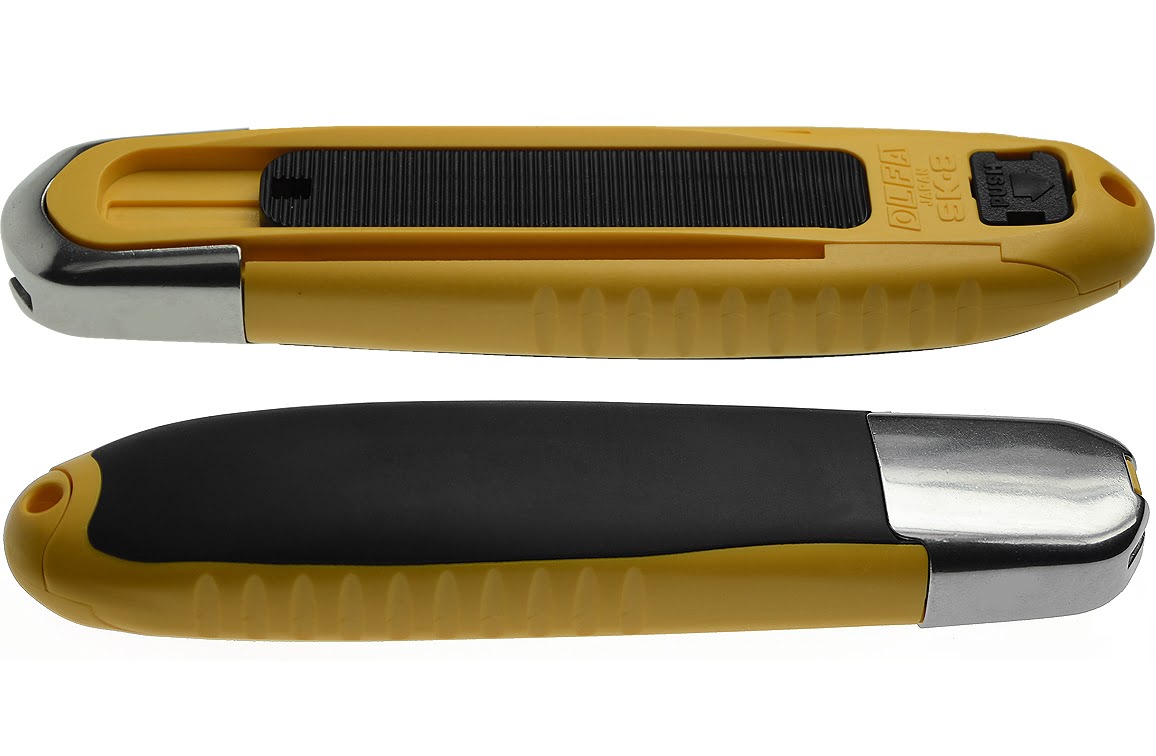 Olfa SK8 snijmesDe Olfa SK8, een terugverend veilig snijmes van Olfa met een stevige stalen neus.