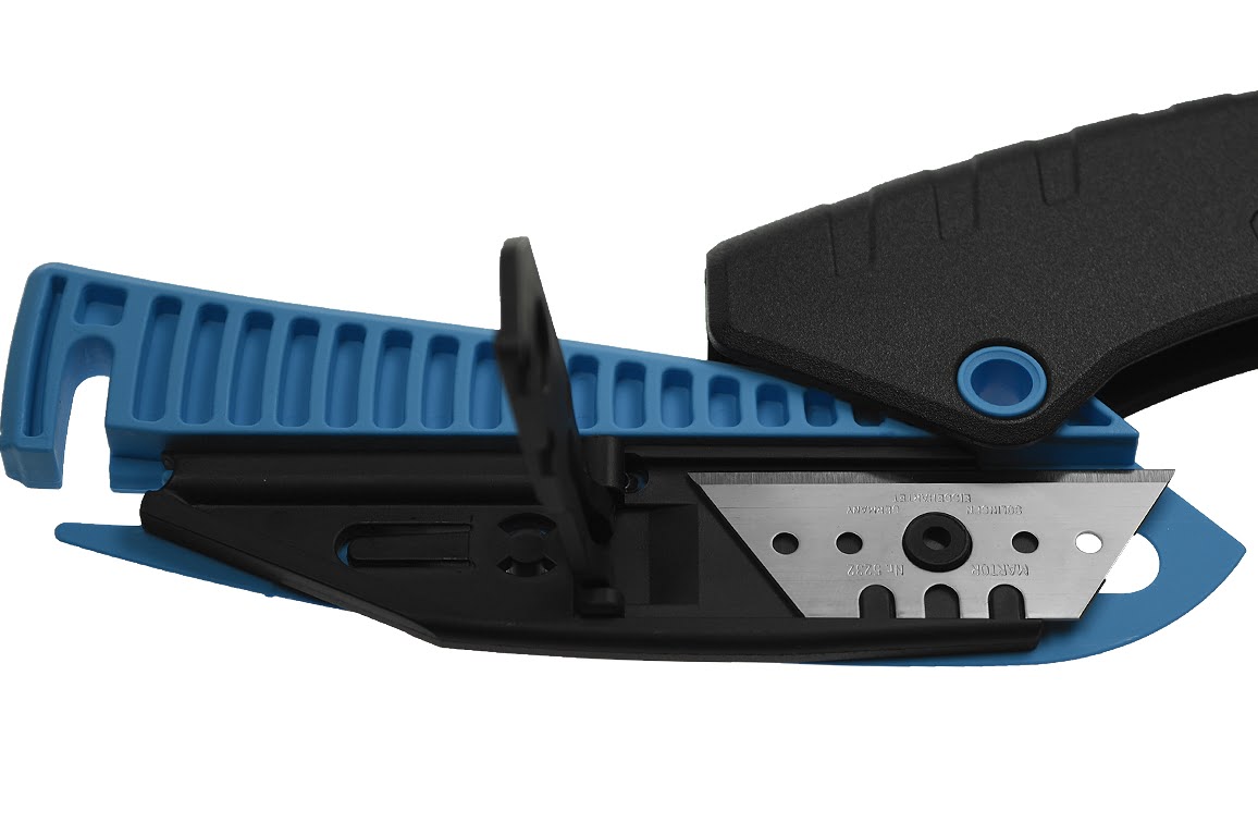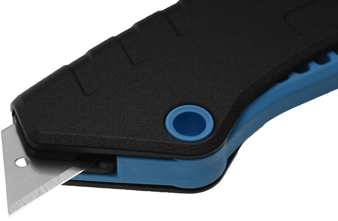 Door het inknijpen van de handgreep schuift het lemmet naar voren en bij het loslaten veert het mesje automatisch weer terug. Erg handig voor vlot snijwerk zoals bijvoorbeeld het opnenen van dozen of verpakkingen.
