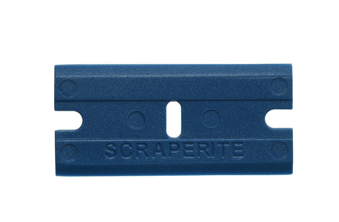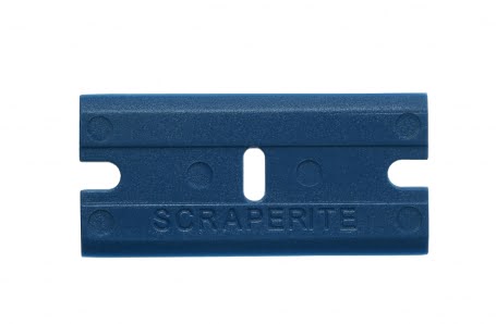 Vervaardigd met behulp van een mengsel van Lexan of polycarbonaat. Het blauwe Scraperite mes is na het industriële zwarte mes het zwaarste en meest taaie kunststof scraperite mes.