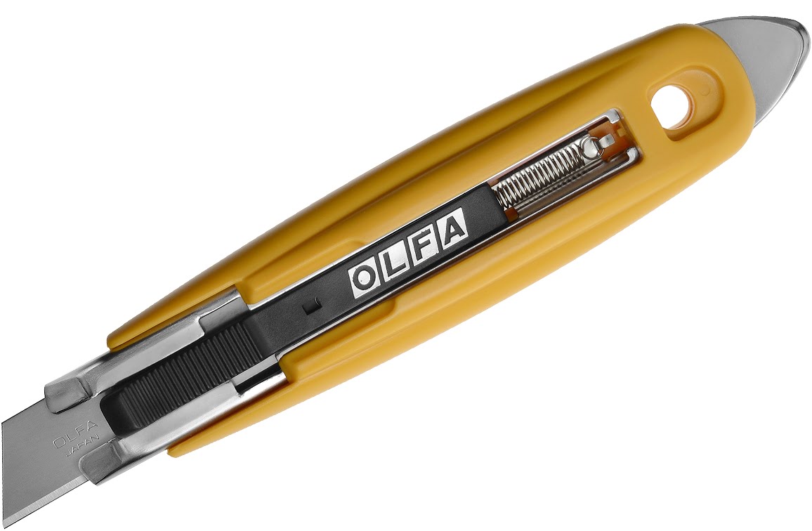 Olfa SK9 snijmesDe Olfa SK9, een lichtgewicht terugverend veiligheidsmes van Olfa. Dit veiligheide Olfa snijmes beschikt over een geharde ABS kunststof behuizing.